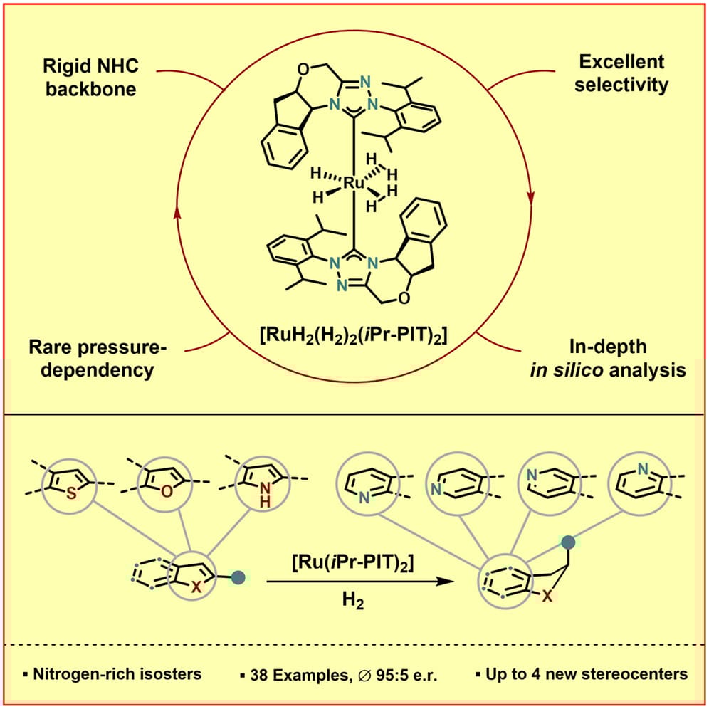 The authors report an efficient method for the synthesis of chiral (semi-)saturated pyridine-fused heterocycles and their respective N-permutations by enantioselective arene hydrogenation with a newly developed ruthenium catalyst. Versatile and highly valuable product motifs were obtained, including pyridine- and piperidine-fused scaffolds with up to four newly formed stereocenters, of which several have not been previously reported.