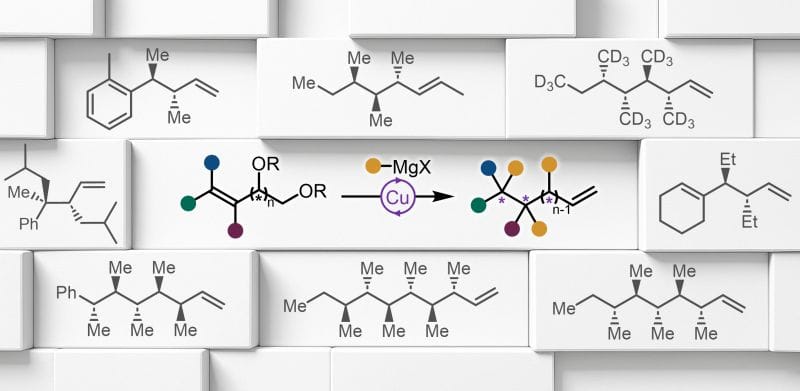 Most synthetically-produced organic compounds are derived from fossil resources, with 90% coming from oil and gas—a reliance that raises sustainability and economic concerns. Traditionally, organic chemicals are produced from petrochemical feedstocks through oxidation and functionalization of hydrocarbons. Transitioning to non-oil-based feedstocks could involve deoxygenative functionalization of highly oxygenated materials like polyols or phenols. However, renewable polyols, such as sugars, are underutilized for synthesizing functionalized fine chemicals like complex chiral alkanes. Here, the authors present a novel method for synthesizing chiral alkanes through deoxygenative alkylation of biobased polyols. By introducing an olefin and activating alcohols as esters, domino SN2’ reactions enable catalytic editing of hydroxy groups, producing chiral alkanes with up to six stereocenters.