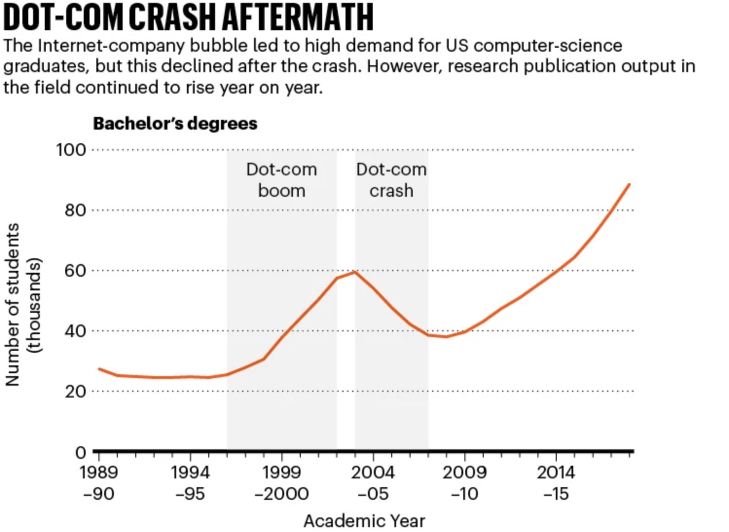 If a crash occurs, experts suggest the fallout could even exceed the impact of the dot-com collapse. However, evidence suggests that research activity will remain resilient. During the dot-com bubble, computer-science publications continued to rise, and displaced talent helped fuel innovation in other sectors. A similar pattern may emerge in AI: researchers leaving industry could strengthen academic labs or launch new scientific ventures.